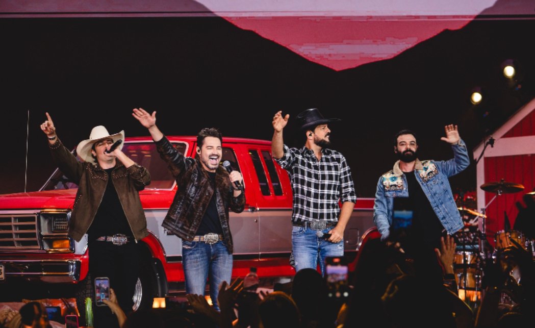 A superprodução da dupla transformou o palco em uma verdadeira experiência sensorial. Com um cenário inédito, a estrutura foi projetada em formato de caixa com fundo infinito e painéis de LED no teto e nas laterais, criando a ilusão de céu aberto e transportando o público diretamente para uma fazenda ao estilo Texas. No palco, elementos grandiosos reforçaram a proposta: um moinho gigante, uma caminhonete vermelha, um celeiro imponente e decorações típicas do interior fizeram parte da cenografia. Combinando referências rústicas com tecnologia de ponta, o resultado foi uma atmosfera imersiva e moderna, que surpreendeu do início ao fim.