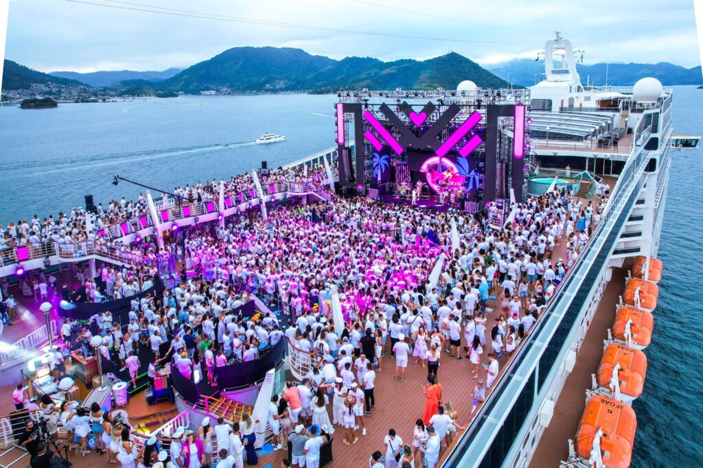 A festa acontece a bordo do impressionante Costa Pacifica, um luxuoso navio de 6.000 metros quadrados, que conta com 1.504 cabines, nove restaurantes, nove bares, piscinas, cassino e teatro. Para esta edição especial, uma infraestrutura exclusiva foi montada, criando uma experiência vibrante e imersiva.
