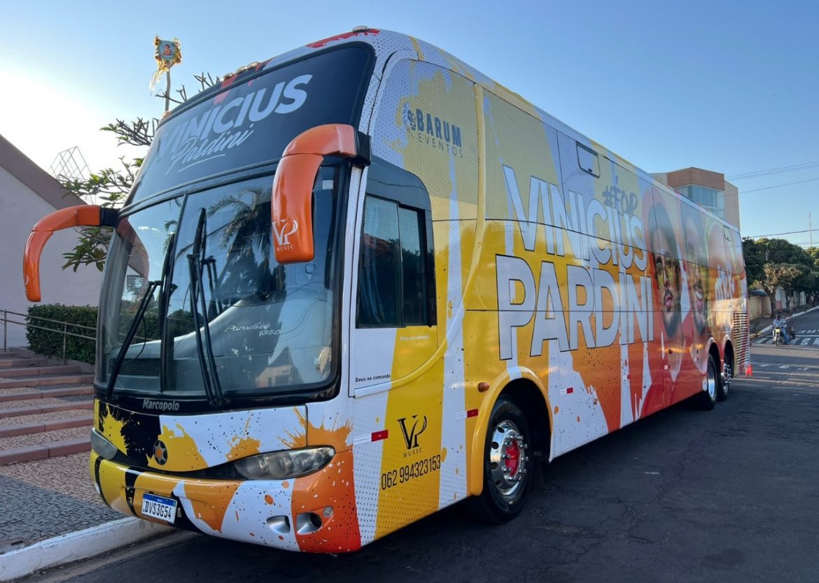 Na última semana, o cantor Vinicius Pardini, que está em sua cidade natal, Clementina, interior do Estado de São Paulo, para comemorar o seu aniversário com os seus familiares, foi surpreendido pelos seus empresários. Em frente à igreja São João Batista, onde começou a cantar ainda criança, ele recebeu um ônibus plotado com a sua foto e nome.
